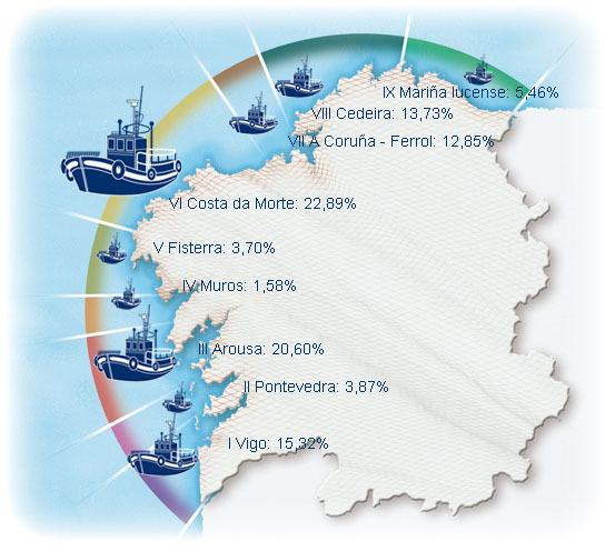 | Zona VIII - Cedeira | 78 | -3,70% | 13,73% | -0,45% | 190 | -3,78% | 2.232 | -2,49% |