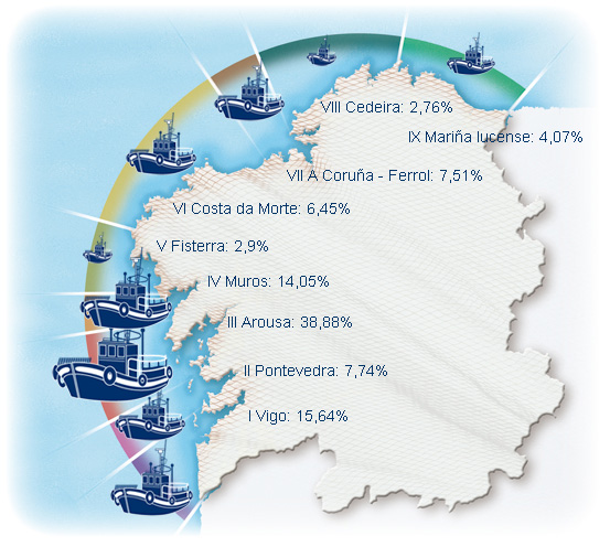 | Zona VI - Costa da Morte | 285 | -1,38% | 6,45% | -0,07% | 3.880 | -2,03% | 19.817 | -3,48% |