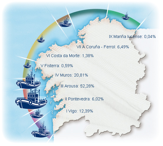 | Zona III - Arousa | 1.329 | 0,23% | 52,28% | 0,18% | 1.662 | 0,76% | 32.432 | 0,77% |