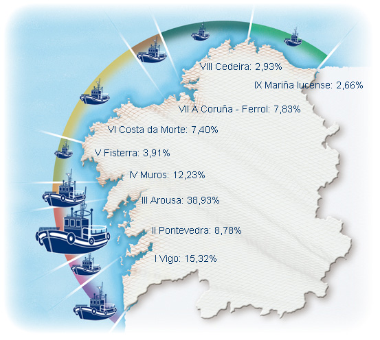| Zona III - Arousa | 1.184 | 0,68% | 38,93% | 0,33% | 2.118 | 0,40% | 32.299 | 1,14% |