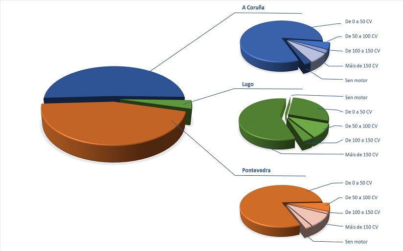 | Sen motor | De 0 a 50 CV | De 50 a 100 CV | De 100 a 150 CV | Máis de 150 CV | Total | ||||||||