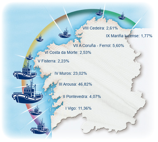 | Zona III - Arousa | 610 | -1,77% | 46,82% | -0,34% | 852 | 16,84% | 14.467 | -0,82% |