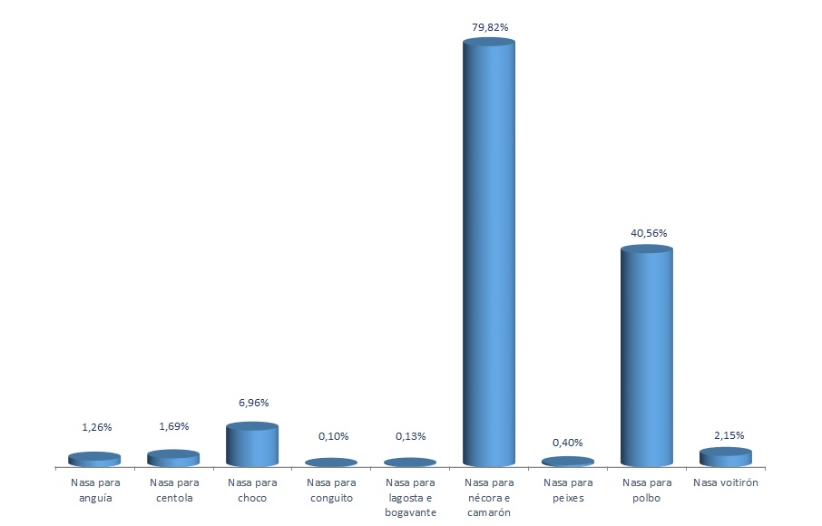 | Nasa para nécora e camarón | 2.409 | -0,62% | 79,82% | 0,11% | 4.395 | -0,89% | 65.372 | -0,86% |