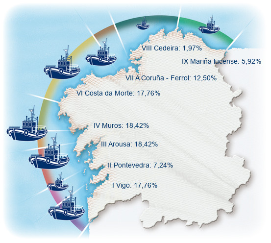 | Zona III - Arousa | 28 | -6,67% | 18,42% | -1,58% | 1.322 | -5,90% | 5.954 | -5,93% |
