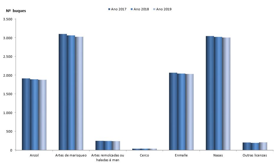 | Artes remolcadas ou haladas á man | 244 | -4 | 7,31 | 0,08 | 2,67 | 0,06 | 27,40 | 0,46 |