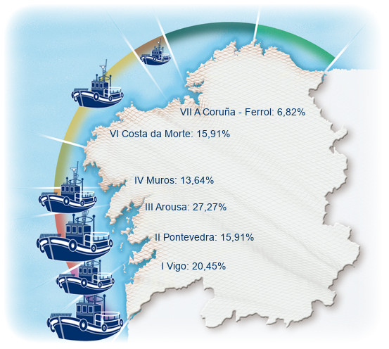 | Zona VI - Costa da Morte | 7 | 0,00% | 15,91% | 0,00% | 43 | 0,00% | 322 | 0,00% |