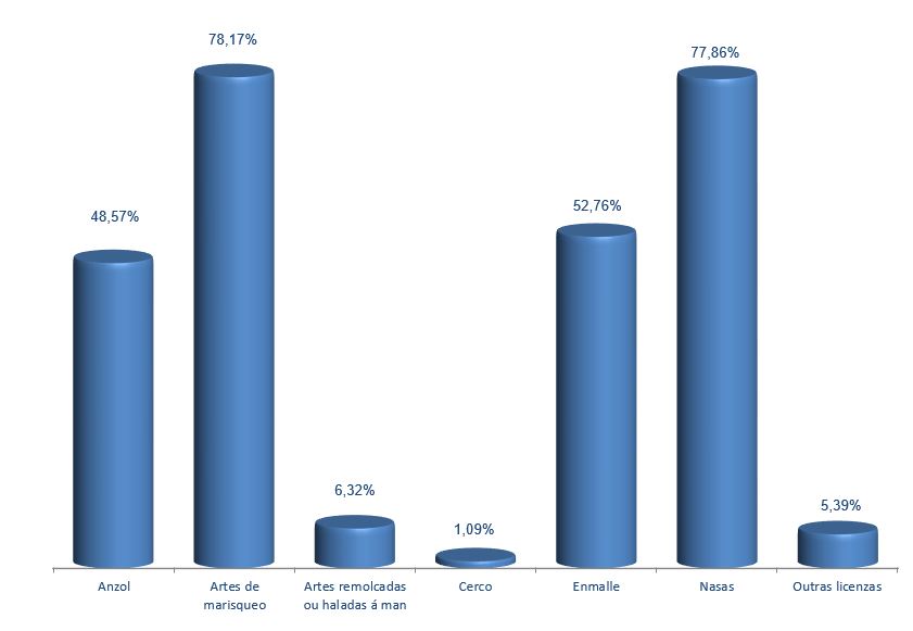 | Artes de marisqueo | 3.005 | -0,53% | 78,17% | -0,05% | 4.659 | -0,12% | 75.391 | -0,30% |