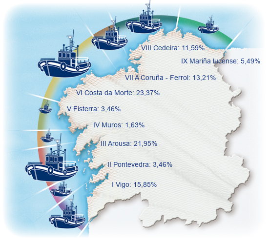 | Zona III - Arousa | 108 | 0,93% | 21,95% | 0,29% | 146 | 0,53% | 3.678 | 1,74% |