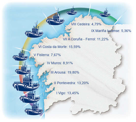 | Zona VI - Costa da Morte | 189 | 1,07% | 15,59% | 0,25% | 904 | 3,31% | 7.683 | 1,73% |