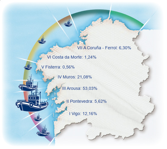 | Zona III - Arousa | 1.321 | -0,97% | 53,03% | -0,03% | 1.821 | 0,24% | 33.089 | 0,20% |