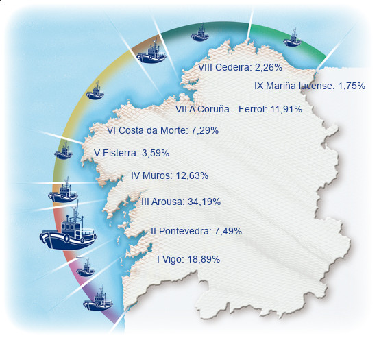 | Zona V - Fisterra | 35 | 6,06% | 3,59% | 0,28% | 179 | 10,46% | 1.581 | 9,72% |