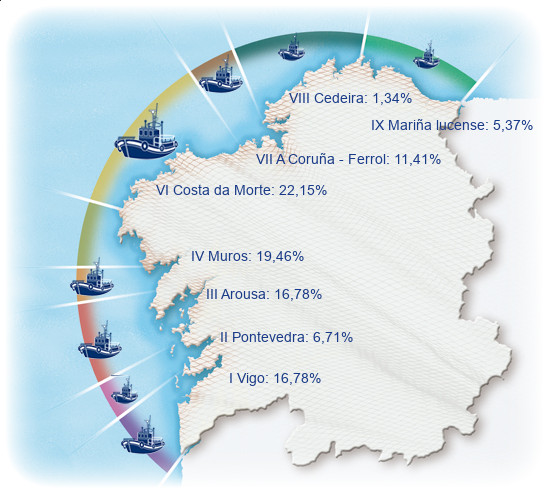 | Zona III - Arousa | 25 | -7,41% | 16,78% | -0,98% | 1.192 | -5,24% | 5.071 | -9,50% |