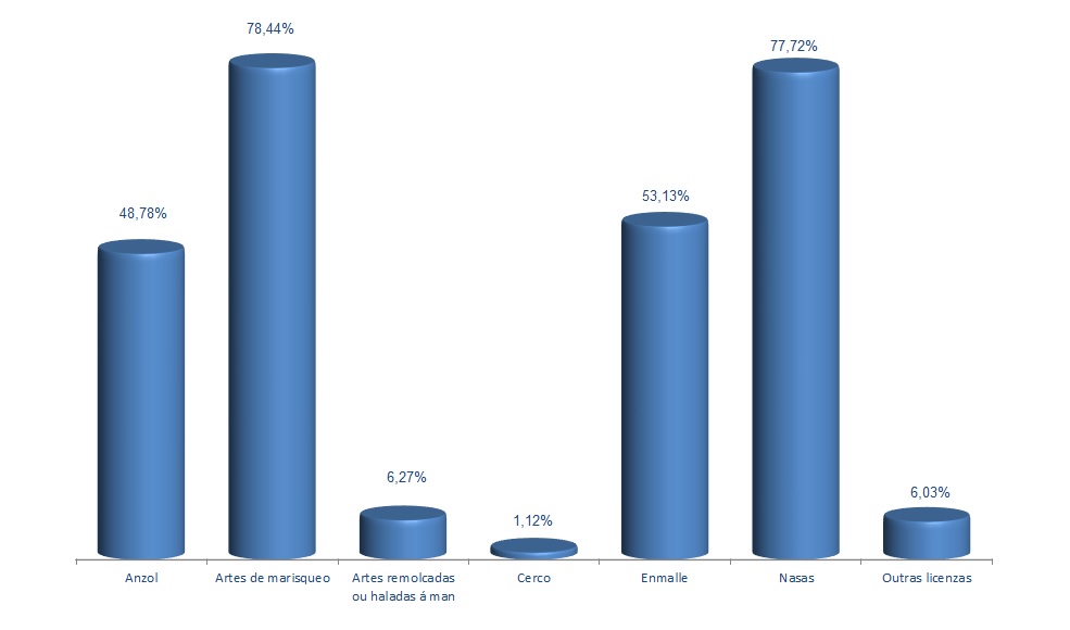 | Artes remolcadas ou haladas á man | 236 | 0,00% | 6,27% | 0,04% | 665 | 1,05% | 6.695 | 0,01% |