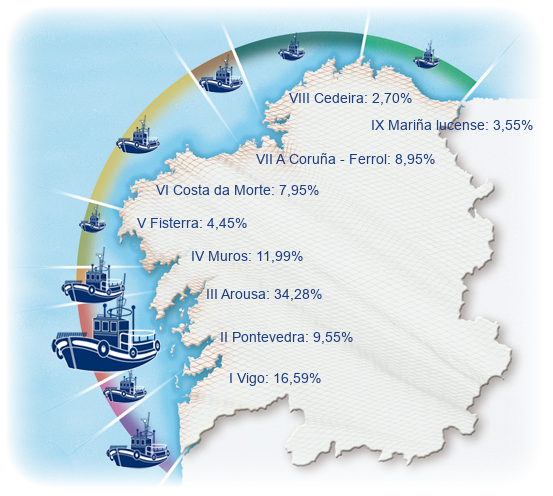 | Zona VI - Costa da Morte | 159 | -1,24% | 7,95% | -0,10% | 850 | -0,85% | 6.733 | -0,53% |