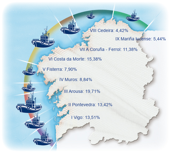 | Zona V - Fisterra | 93 | -1,06% | 7,90% | -0,01% | 507 | -1,79% | 4.318 | -0,51% |