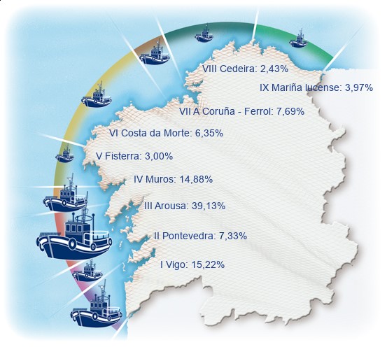 | Zona III - Arousa | 1.628 | -0,91% | 39,13% | -0,03% | 13.906 | -3,43% | 69.034 | -1,51% |
