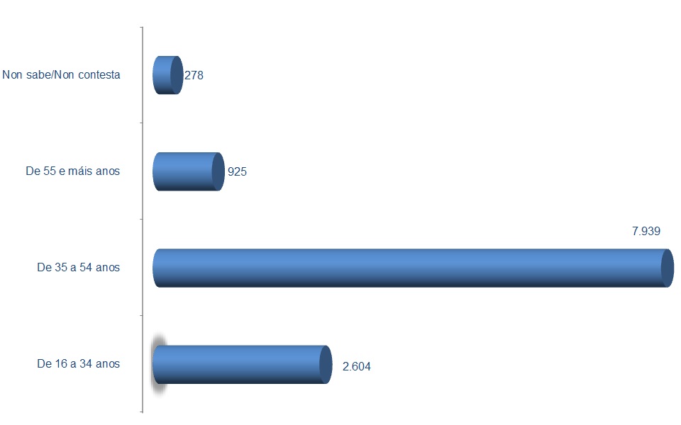 | De 55 e máis anos | 719 | 7,81% | 77 | 6,87% | 129 | 9,07% | 925 | 7,87% |