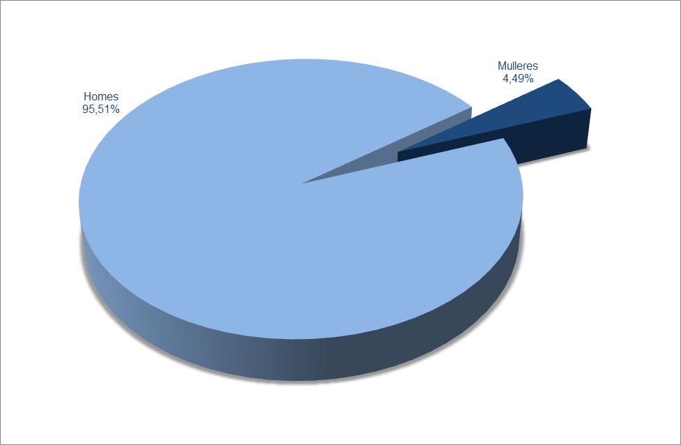 | Mulleres | 469 | 5,54% | 4 | 0,41% | 4 | 0,41% | 478 | 4,49% |
