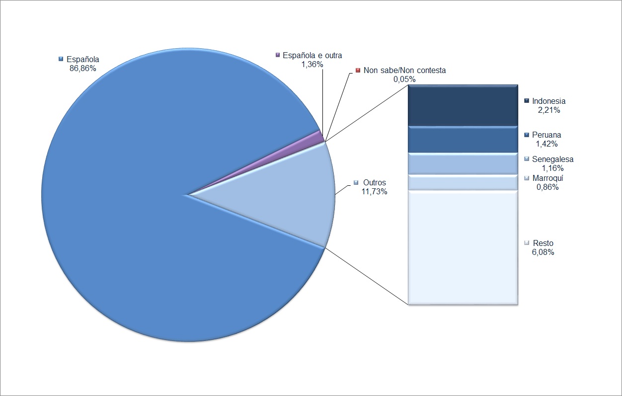 | Estranxeira | 666 | 7,87% | 457 | 41,76% | 124 | 11,47% | 1.247 | 11,73% |