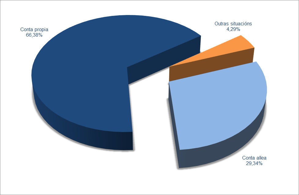 | Conta propia | 3.275 | 74,17% | 665 | 75,03% | 9 | 1,39% | 3.949 | 66,38% |