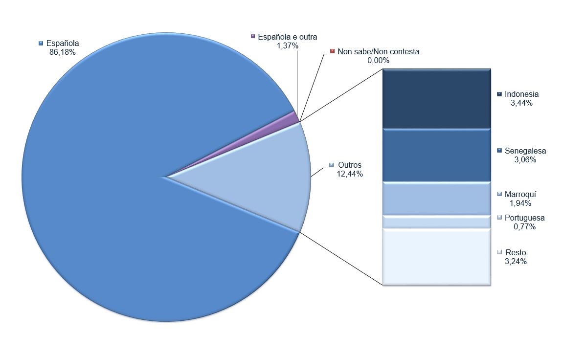| Española e outra | 97 | 1,05% | 15 | 1,35% | 44 | 4,41% | 156 | 1,37% |