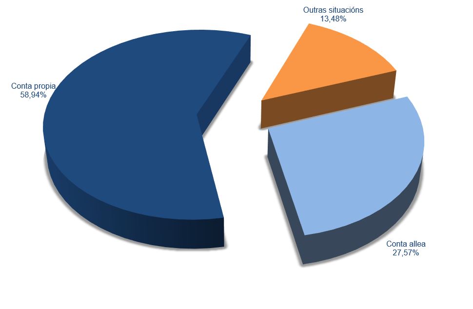 | Conta propia | 2.582 | 66,38% | 489 | 73,46% | 11 | 1,63% | 3.082 | 58,94% |