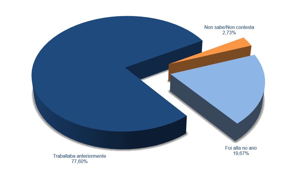| Traballaba anteriormente | 7.105 | 79,45% | 714 | 67,41% | 679 | 71,51% | 8.498 | 77,60% |