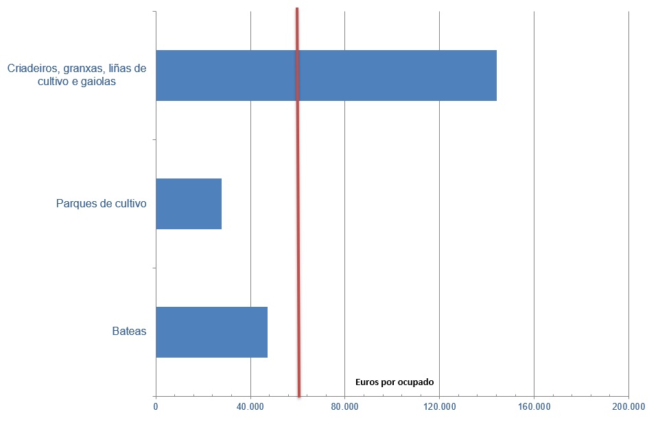 | Criadeiros, granxas, liñas de cultivo e gaiolas | 111.648 | 35,49% | 774 | 14,28% | 144.224 |