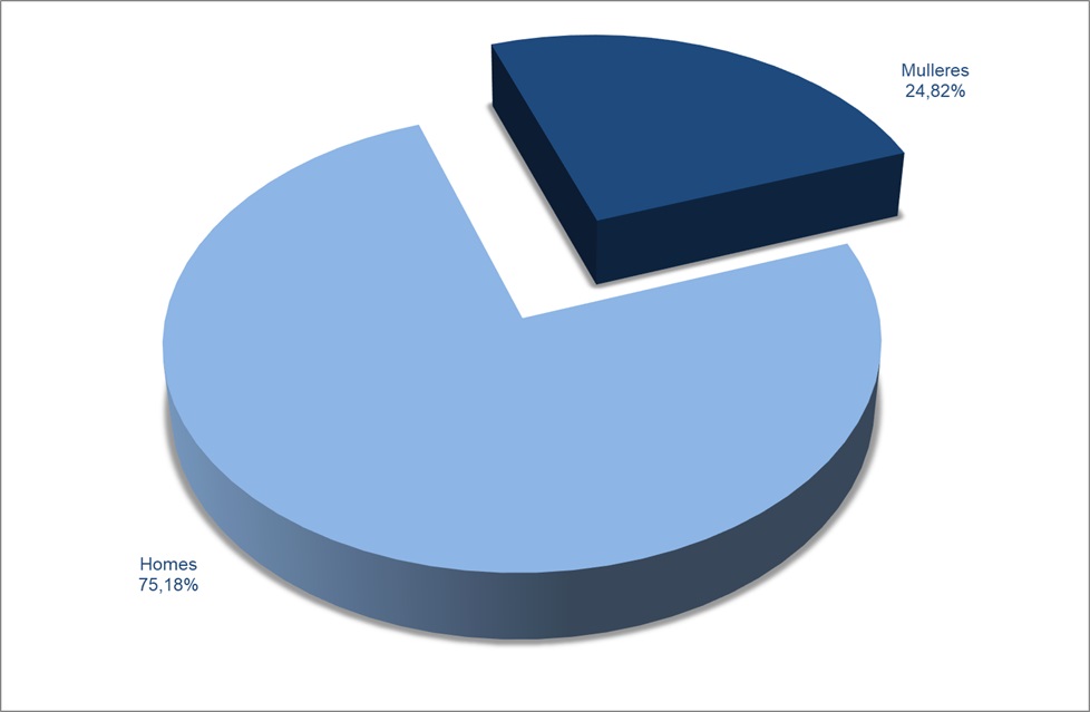 | Mulleres | 637 | 20,49% | 291 | 39,70% | 179 | 28,96% | 1.107 | 24,82% |