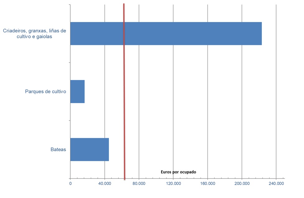 | Criadeiros, granxas, liñas de cultivo e gaiolas | 137.922,25 | 47,54% | 618 | 13,86% | 223.175,16 |