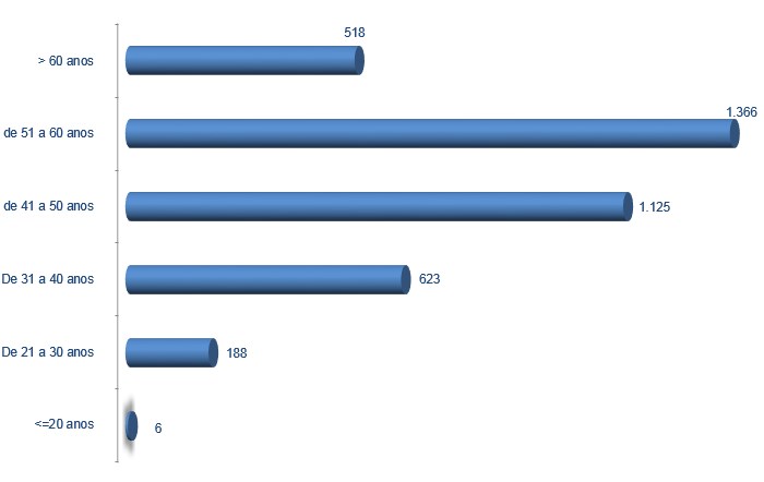 | Menor ou igual que 20 anos | De 21 a 30 anos | De 31 a 40 anos | De 41 a 50 anos | De 51 a 60 anos | Máis de 60 anos | Total | |||||||