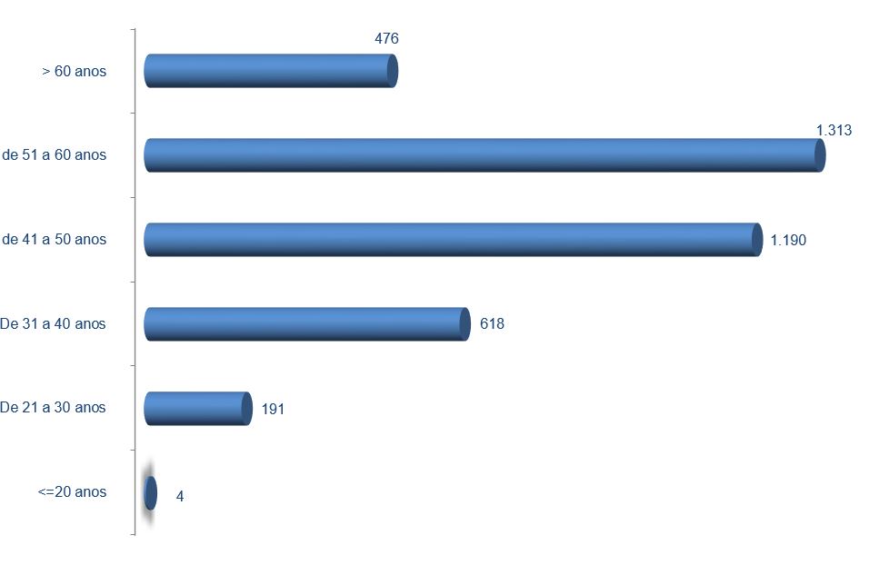 | Menor ou igual que 20 anos | De 21 a 30 anos | De 31 a 40 anos | De 41 a 50 anos | De 51 a 60 anos | Máis de 60 anos | Total | |||||||