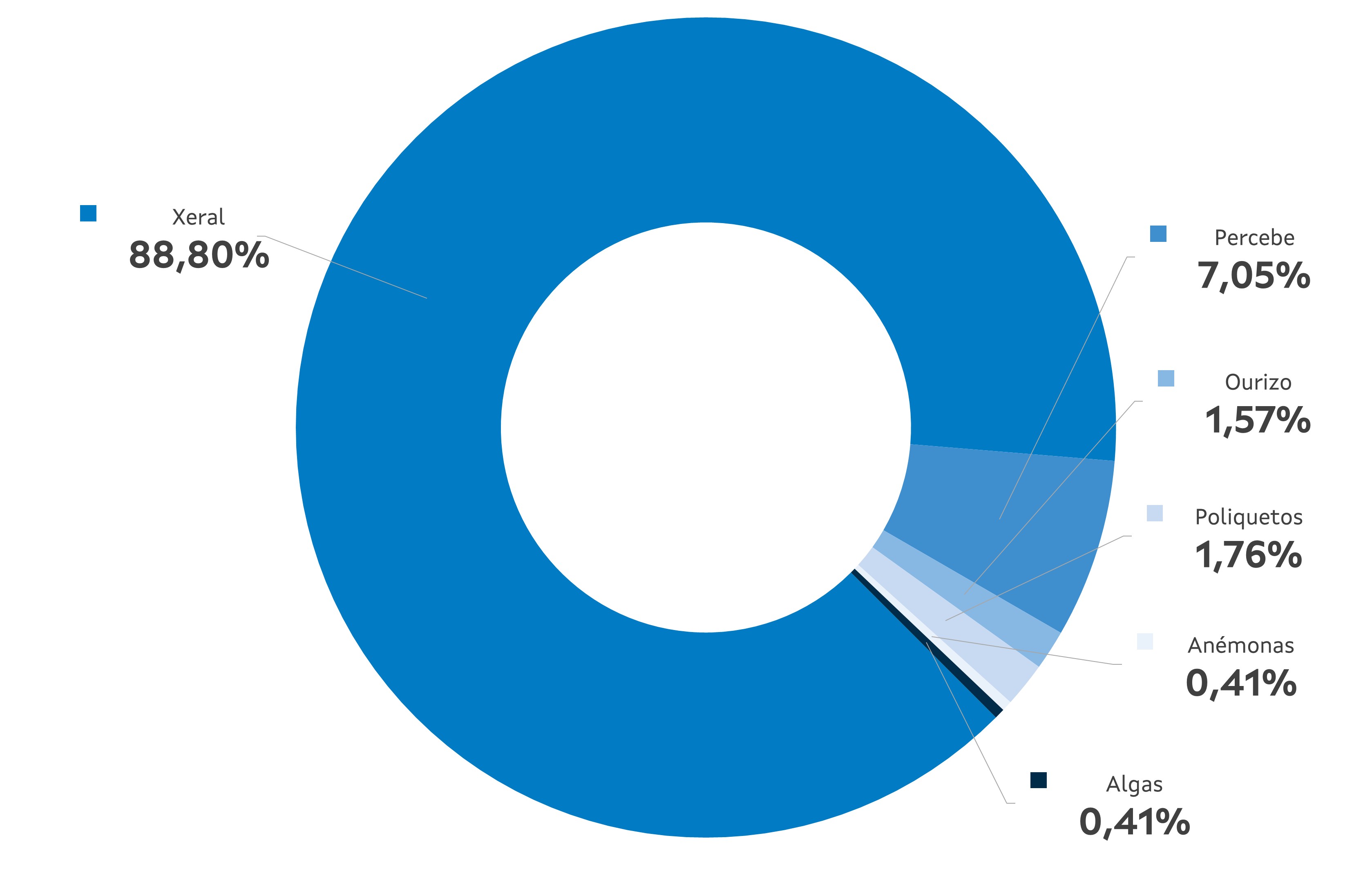 | Xeral | Percebe | Ourizo | Poliquetos | Anémones | Algas | Total | ||